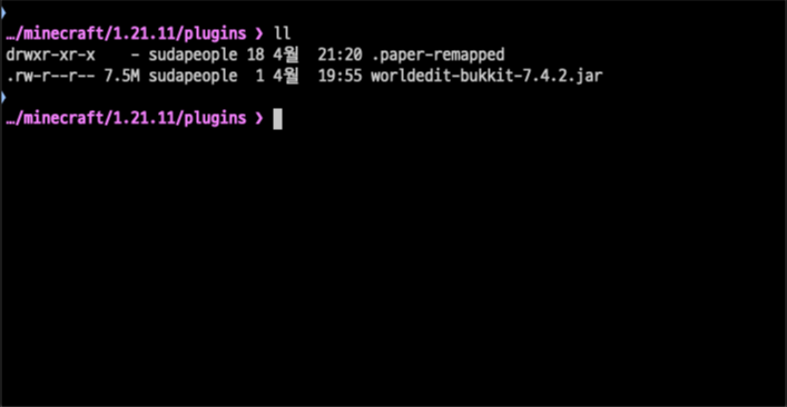 - WorldEdit 플러그인 파일이 서버의